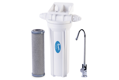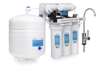 Sistema de purificación de Ósmosis Inversa muy práctico para conseguir agua de tipo mineral directamente en el hogar a través de un sistema de filtros que reduce los contaminantes del agua de red. Son equipos depuradores compactos y de reducido tamaño que se instalan debajo del fregadero.